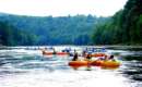Adirondack Rafting Adventures at the Adirondack Adventure Center offers guided whitewater rafting trips down the Sacandaga River. The river has 3.5 miles of dam-released Class II-III whitewater rapids, and everyone ages 5 and older can enjoy a 2-hour trip.